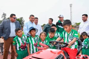Entregamos un tractor moderno para el mantenimiento del campo del estadio de Bermejo, con el objetivo de mejorar las condiciones deportivas. Este importante aporte nos permitirá optimizar el cuidado del césped y garantizar mejores escenarios para la práctica del deporte, beneficiando a clubes, deportistas y a toda la población que disfruta del fútbol en la región.
